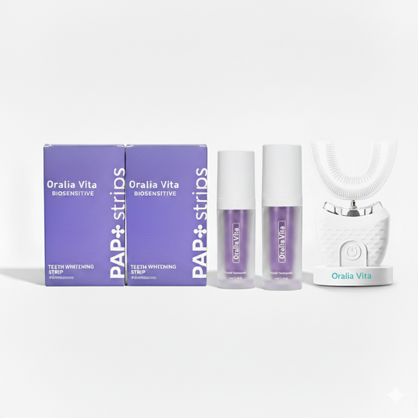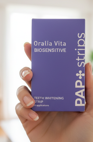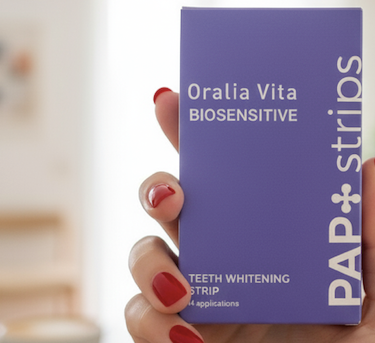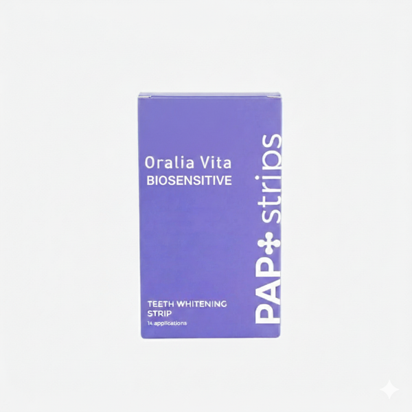 Les Bandes de blanchiment BIOSENSITIVE pour dents sensibles Oralia Vita offrent un sourire éclatant en toute douceur.